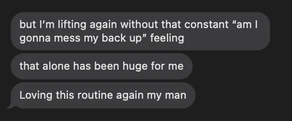 Through a structured plan, Andrew stopped treating his spondylolisthesis like a life sentence and started treating it like a capacity problem. He learned how to move, brace, hinge, and load properly. Gradually, intentionally, and without fear.